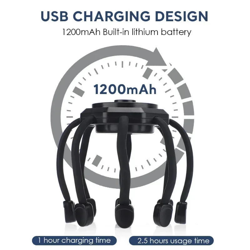 Experience ultimate relaxation and scalp care with the 3-Mode Rechargeable Octopus Scalp Massager — your portable wellness companion for stress relief and better focus. Designed with ergonomic precision and advanced TENS massage technology, it gently stimulates the scalp without electrical discomfort, promoting relaxation, circulation, and calm.